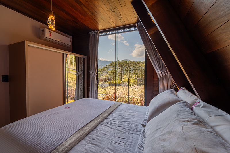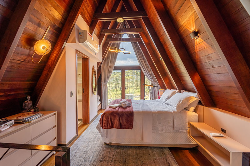 A cabana tem 93m de área construída, foi pensada em cada detalhe para proporcionar uma experiência de hospedagem incrível. Conforto, elegância e sofisticação em meio à natureza.